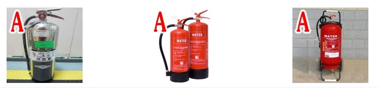 a) Bình chữa cháy chứa nước dập cháy loại A